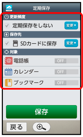 電話帳/ブックマーク/カレンダーを自動的に保存する