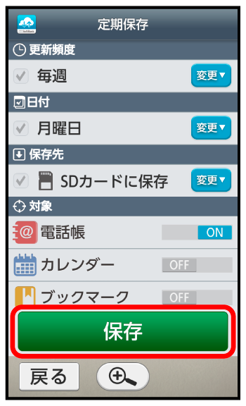 定期的に、本機の電話帳/ブックマーク/カレンダーのデータを、サーバー/SDカードに自動保存することができます。