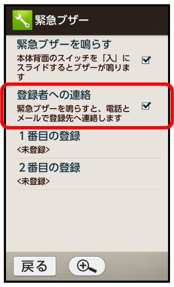 緊急ブザーを鳴らしたときに、電話やメールで連絡する相手を登録します。