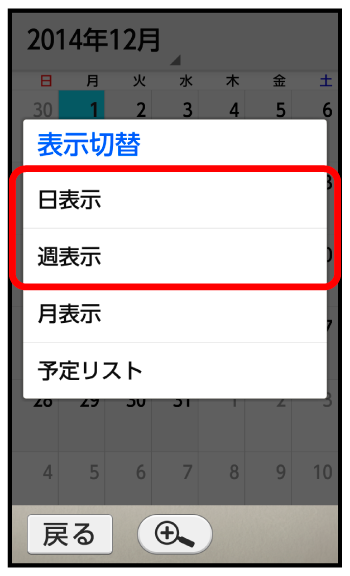 カレンダーの表示を切り替える