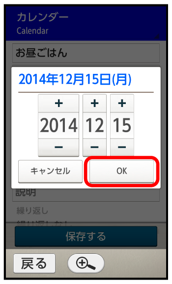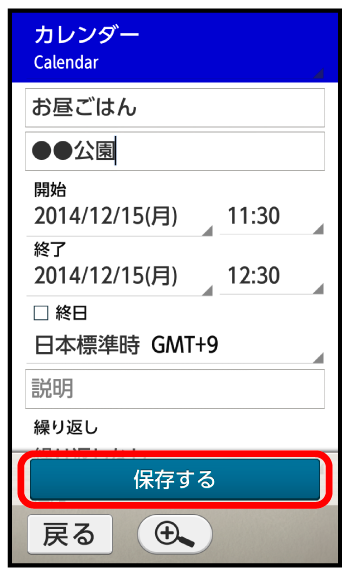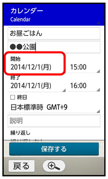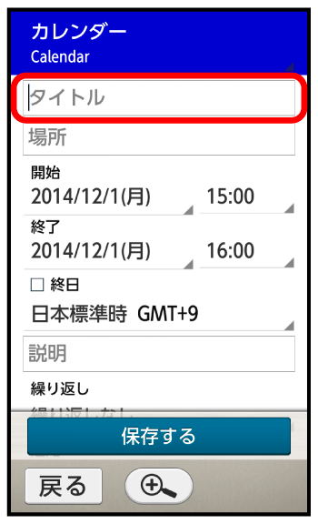タイトルを入力タイトルが入力され、予定登録画面に戻ります。