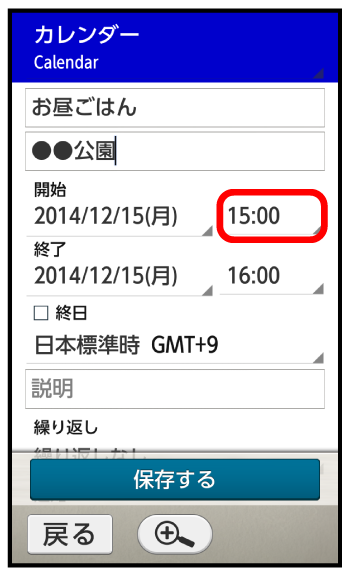 /をくり返しタップして、時刻を入力開始時刻が設定されます。