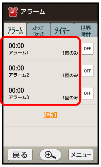 アラーム設定画面でメロディをタップ- メロディをタップすると、再生されます。再生を止めるときは、をタップします。
