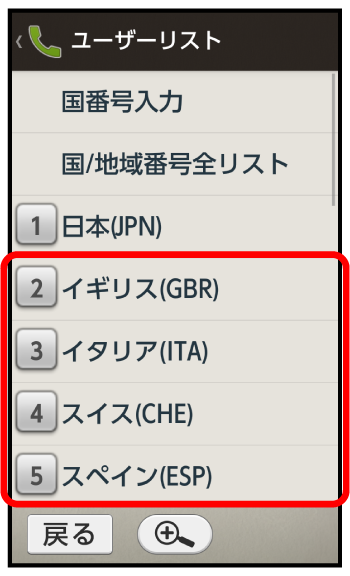 国番号リスト画面が表示されます。