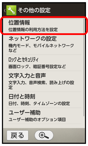 | モード | 現在地の位置情報取得に無線ネットワークやGPS機能を使用するかどうかを設定します。位置情報を取得すると、アプリケーションで利用されます。 |