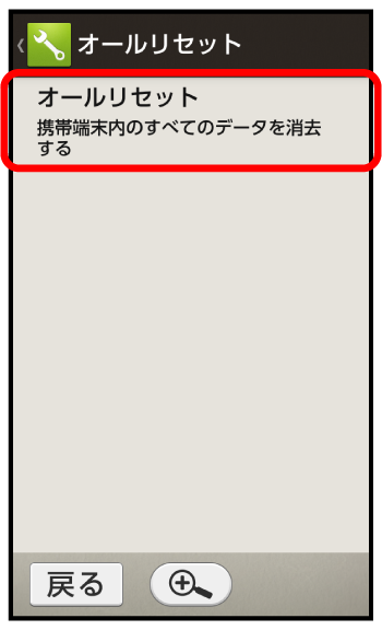 - オールリセットすると、本機内のすべてのデータが消去されます。事前に必要なデータはバックアップをとることをおすすめします。