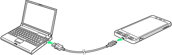 PC接続用microUSBケーブル[SHDDL1](オプション品)を使用して充電します。