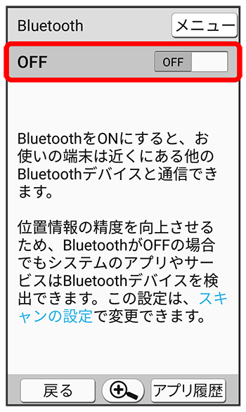 - Bluetooth®機能を無効にするときは、をタップします(表示)。