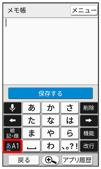 文字入力モードをタップ