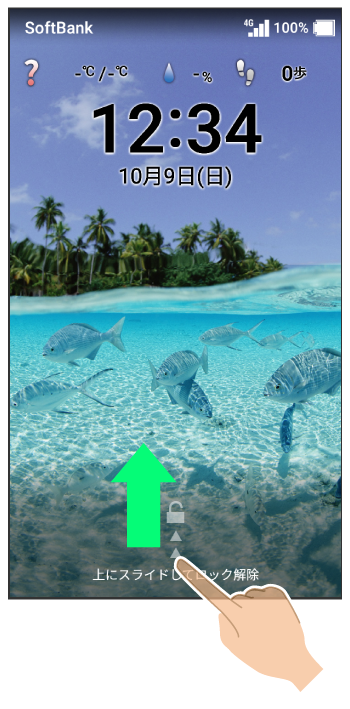 画面消灯(画面ロック)時に、本機を机の上などから持ち上げると画面を点灯するようにできます(持つと画面点灯)。詳しくは「モーションでON/OFFの設定」を参照してください。