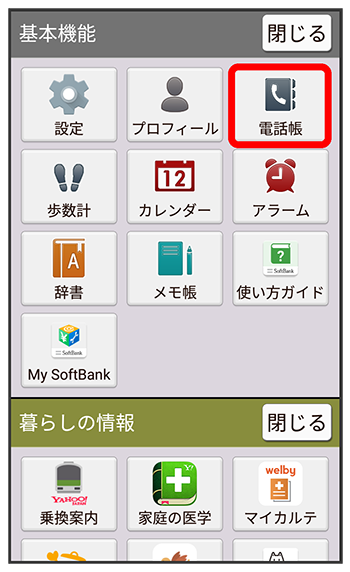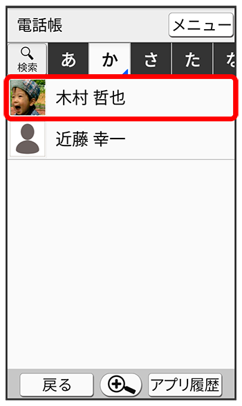 電話帳画面が表示されます。
