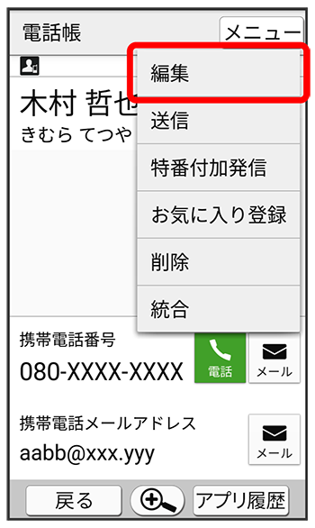 連絡先編集画面が表示されます。