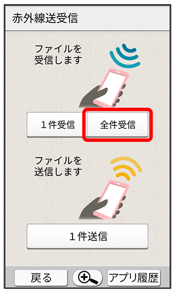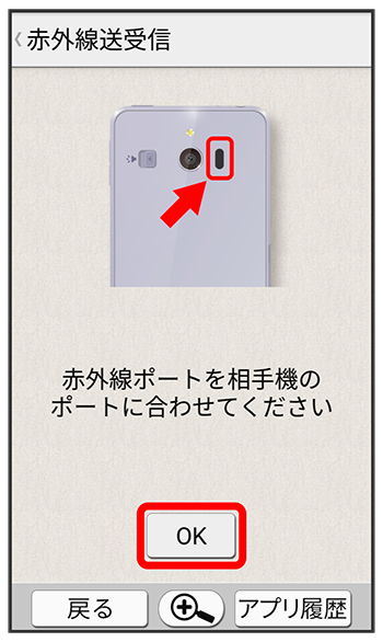 通信時は、本機と送信側の機器を近づけ、双方の赤外線ポートがまっすぐに向き合うようにしてください。