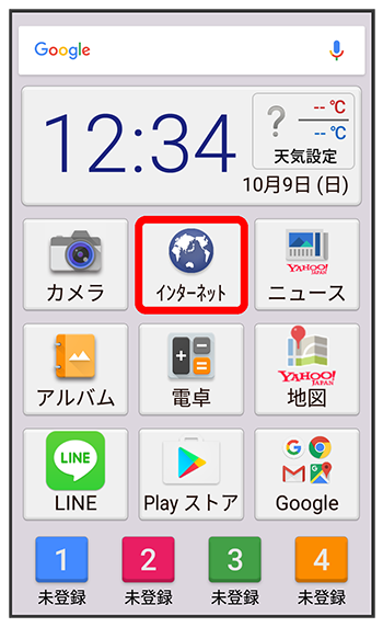 インターネット画面が表示されます。
