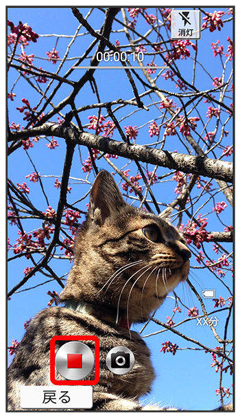 撮影終了音が鳴り、動画が内部ストレージに保存されます。