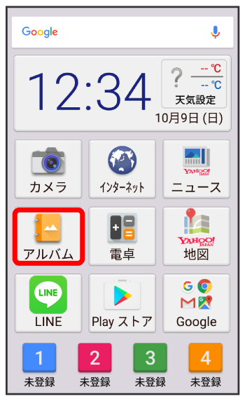 - はじめてアルバムを起動したときは、の画像一覧画面が表示されます。2回目以降は、前回終了時の画面(画像一覧画面またはフォルダ画面)が表示されます。