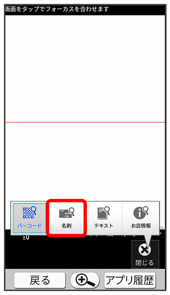 名刺リーダー画面が表示されます。