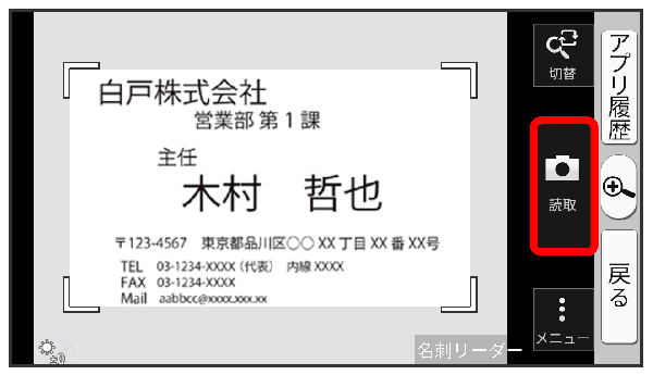 - 名刺リーダー画面が表示されたときは、手順