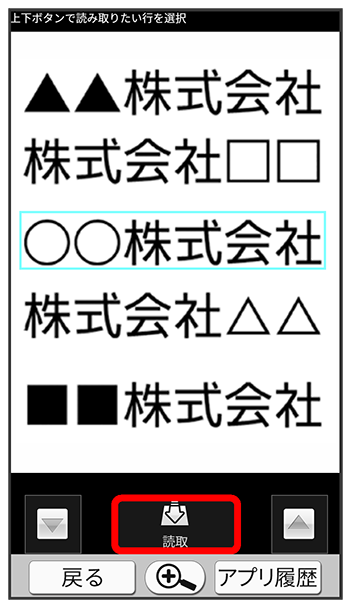 読み取り結果(登録)画面で、URLなどをタップ各画面での操作読み取り結果を修正する