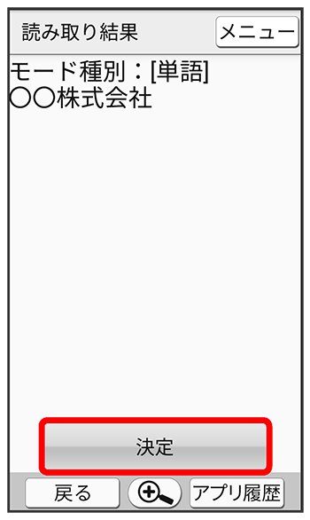 読み取り結果(モード種別)画面でモード種別をタップ単語以外の読み取り結果を利用する