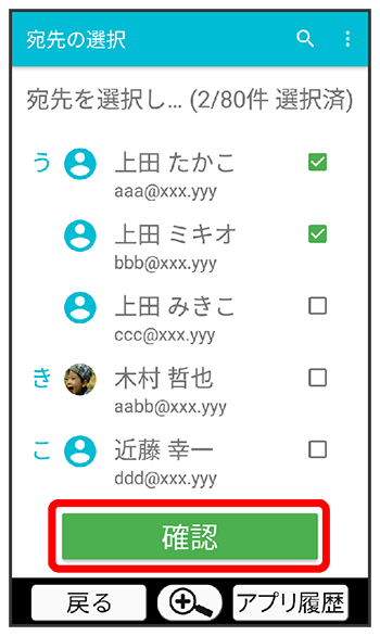 送信履歴のある宛先には、連絡先変更お知らせメールを送信できません。履歴を削除すると送信できるようになります。