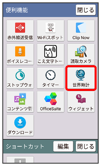 世界時計画面で削除する都市をタップ(世界時計の表示方法を設定する