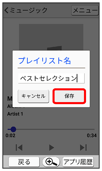プレイリスト名入力欄をタッププレイリスト名を入力