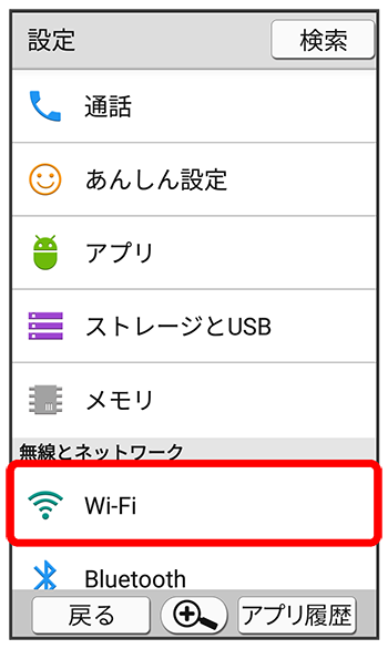 Wi-Fi画面で- 「Wi-Fi」がONのときに設定できます。