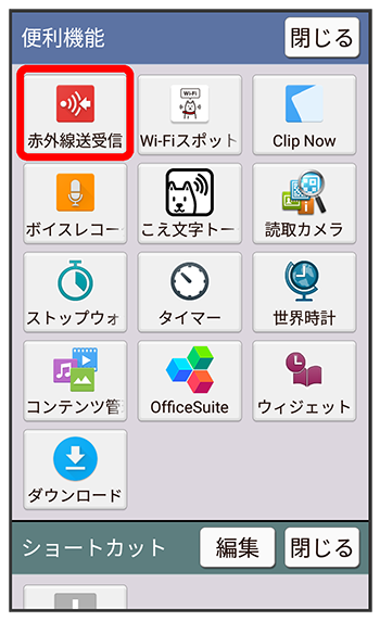 赤外線送受信画面が表示されます。