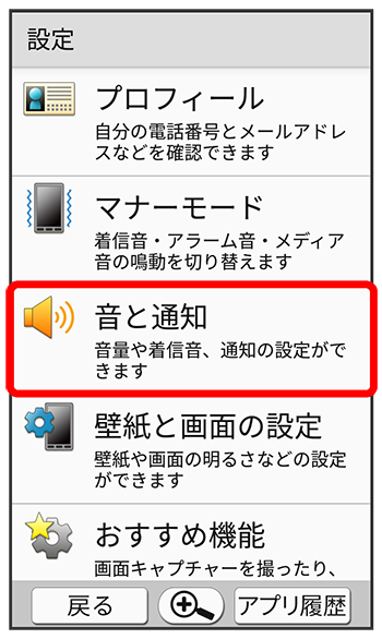 音と通知画面でアプリケーション(、など)をタップ/画面に従って操作- をタップすると、常にそのアプリケーションが利用できるようになります。