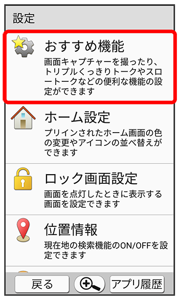 おすすめ機能画面が表示されます。
