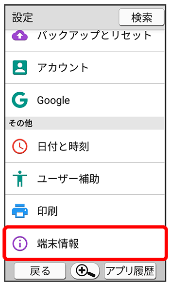 端末情報画面でを7回タップ開発者向けオプション画面が表示されます。
