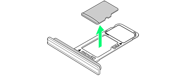 - ディスプレイを上にして、カードトレイを引き出してください。ディスプレイを下にしたり、本機を立てた状態でカードトレイを引き出すと、SIMカードやSDカードがカードトレイから外れ、紛失する可能性があります。