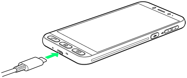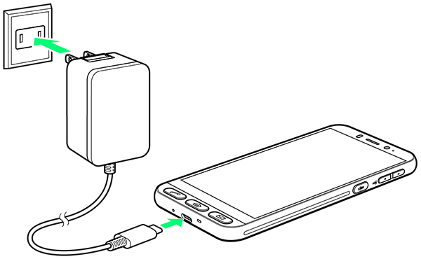 本機の外部接続端子に、ACアダプタのUSB Type-Cプラグを差し込む