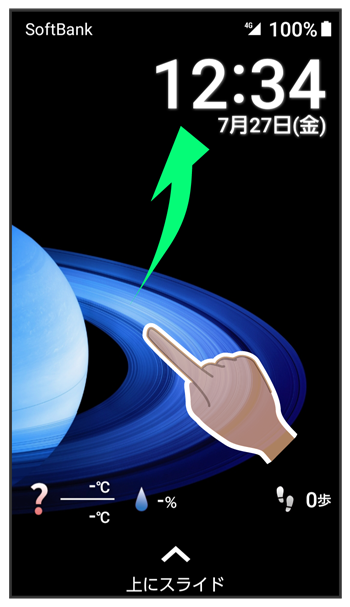 電源が入り、しばらくするとロック画面が表示されます。