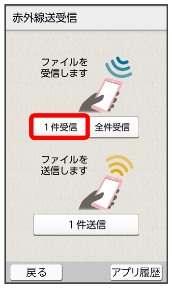 赤外線通信でデータを1件ずつ受信する(例:電話帳)