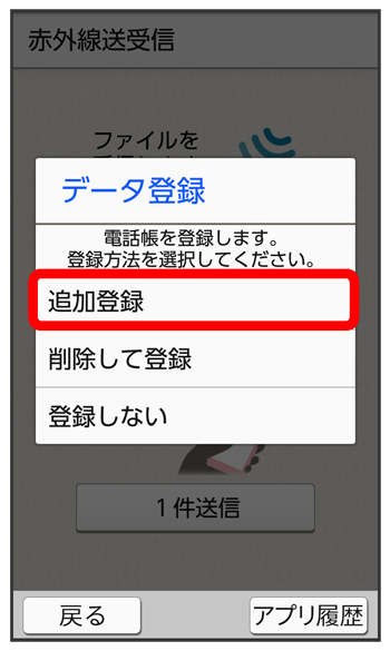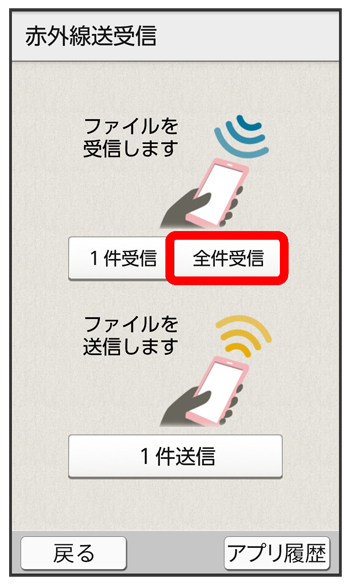 赤外線通信で機能ごとのデータを一括して受信する(例:電話帳)