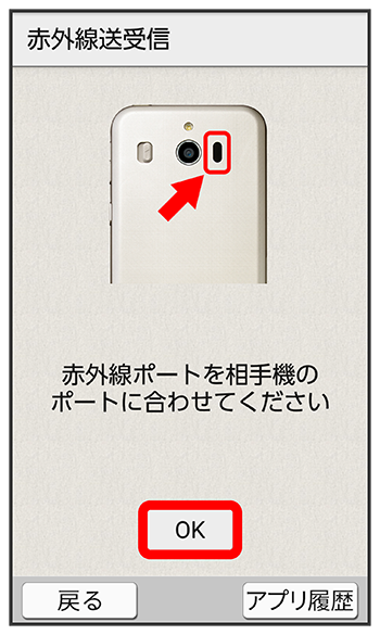 通信時は、本機と送信側の機器を近づけ、双方の赤外線ポートがまっすぐに向き合うようにしてください。