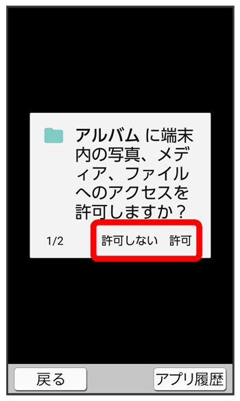 アプリが本機のデータやカメラなどを利用することを許可します。