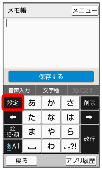 | 入力方式 | キーボード(入力方式)の切り替え、音声入力ができます。 詳しくは、「キーボードを切り替える」、「音声で文字を入力する」を参照してください。 |