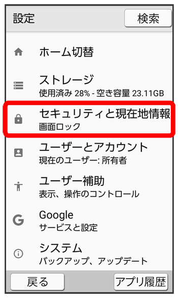 セキュリティと現在地情報画面が表示されます。