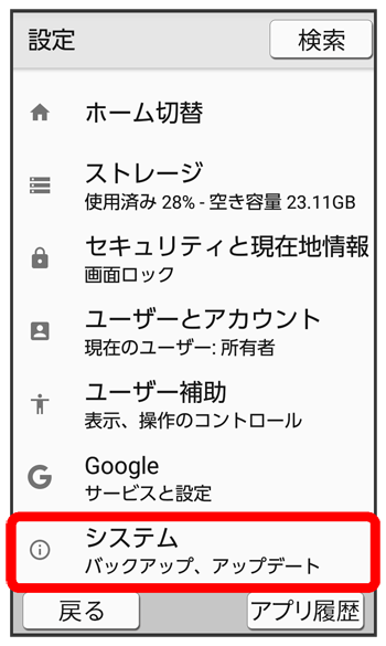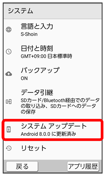システムアップデートが必要なときは、通知が表示されます。通知をタップし、画面に従って操作してください。通知が表示されない場合などは、次の手順で必要かどうかを確認してアップデートできます。