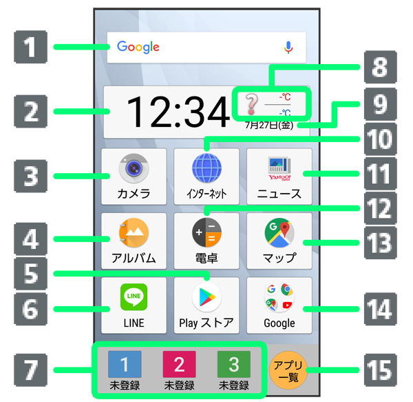 - 「天気の地域の設定」で設定した地域の天気予報が表示されます。