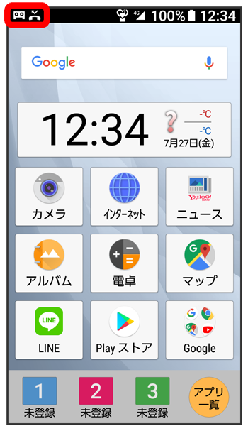 ステータスバーの左から表示されるアイコンには、次のようなものがあります。