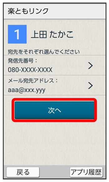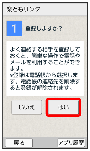 - すでに緊急ブザー連絡先に登録されている電話帳のときは、上記の画面は表示されず、楽ともリンクの登録が完了します。