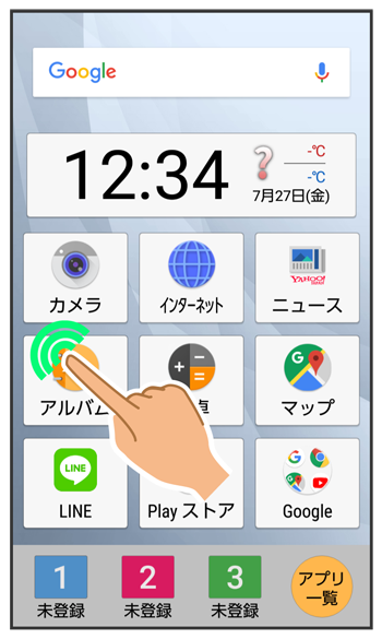 ホーム画面でアイコンをロングタッチフォルダにドラッグ- アプリ一覧画面でも同様に操作できます。