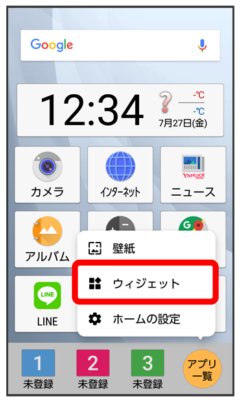 - 画面の端に表示されるページまでドラッグすると、ページを切り替えてウィジェットを追加できます。一番下のページまでドラッグすると、ページを1枚増やして追加できます。