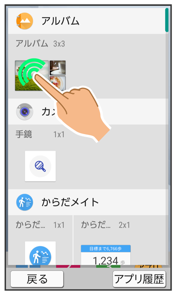 | アルバム | 本機のカメラで撮ったり、内部ストレージやSDカードに保存した写真や動画などを確認できます。 |