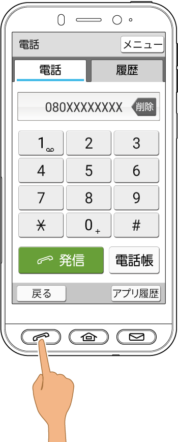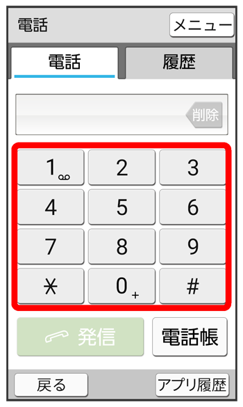 をタップして番号を消去し、正しい番号を入力し直してください。