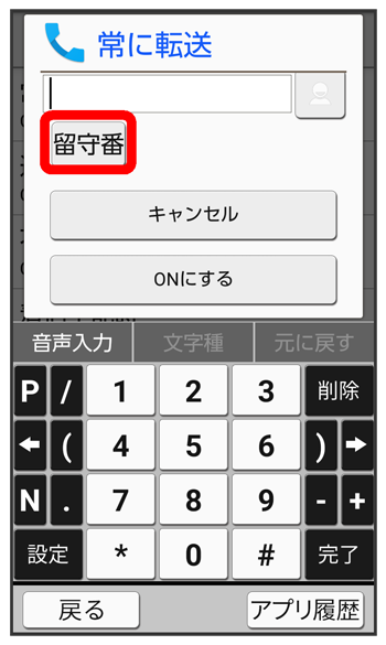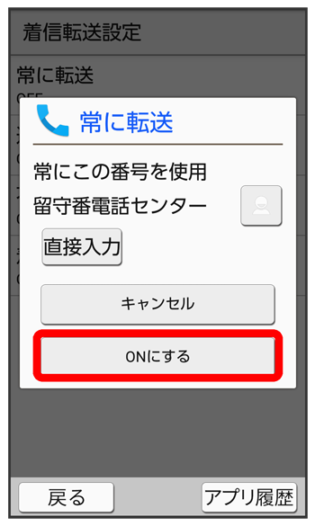 - をタップしたときは、常に着信を留守番電話センターに転送するかどうかを設定できます。
